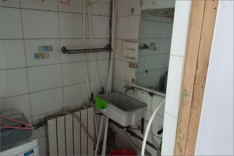 房屋老化严重,布局不合理,入户门直对着卫生间的门,动线很不方便。